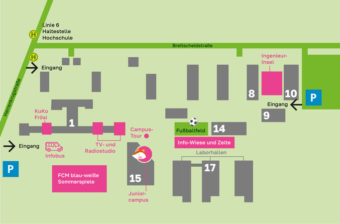 aufgrund einer Veranstaltung im Elbauenpark werden unsere Parkplätze am 9. Mai mit Security verstärkt, damit Ihnen als Besucher:innen des Open Campus oder der "Blau-weißwn Sommerspiele" des FCM ausreichend Parkplätze zur Verfügung stehen. Richten Sie sich bitte auf mögliche Wartezeiten ein.