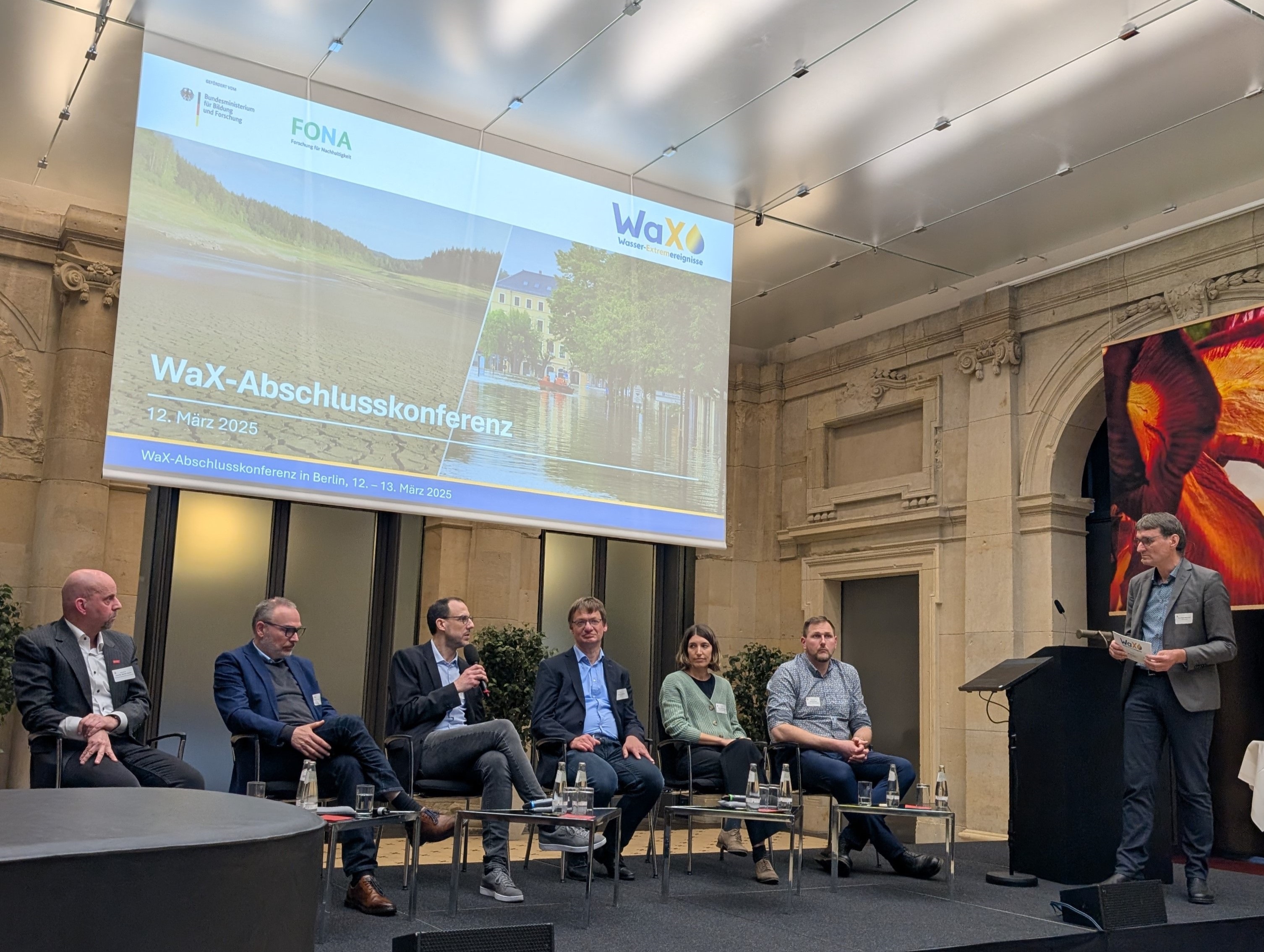 Das Bundesministerium für Bildung und Forschung hat am 12.–13. März 2025 zur Abschlussveranstaltung der Fördermaßnahme WaX „Wasser-Extremereignisse“ in die Berlin-Brandenburgischen Akademie der Wissenschaften eingeladen. Die Forschungsergebnisse unseres Forschungsprojekts InSchuka4.0 wurden von Prof Müller-Czygan (Projektpartner der Hochschule Hof) und Henning Oeltze präsentiert. Während der Podiumsdiskussion stellen die einzelnen Forschungsprojekte dem Fachpublikum Rede und Antwort. Weitere Informationen zum Forschungsprojekt finden Sie auf der WaX Abschlusskonferenz Informationsseite.