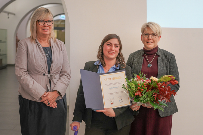 Die ukrainische Studentin Sofia Sherer (Bildmitte) kam im Alter von 13 Jahren mit ihrer Familie nach Deutschland. An der Hochschule Magdeburg-Stendal studiert sie im 5. Fachsemester „Internationale Fachkommunikation und Übersetzen“. Sie beherrscht bereits fünf Sprachen und lernt derzeit extracurricular die deutsche Gebärdensprache. Seit Beginn ihres Studiums beeindruckt sie mit überdurchschnittlichen Leistungen und einem hohen sozialen Engagement.
