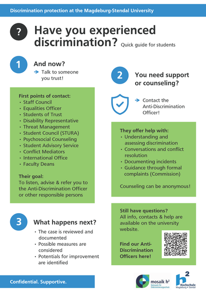 • einen respektvollen, sensiblen Umgang bei allen Schilderungen von Diskriminierungsvorfällen.